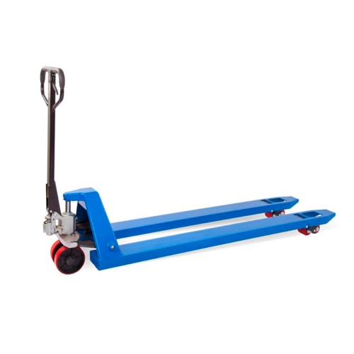 Для перевозки длинномерных грузов и поддонов нестандартных размеров рекомендуем воспользоваться специальными моделями гидравлических тележек. Длина их вил больше стандартной и варьируется от полутора до двух метров.